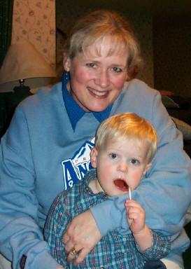 There is nothing more fun than watching Ty learn new words and phrases as he seems to gain more personality all the time. He has learned what "funny" means and when we laugh he laughs along (even though he doesn't understand) and says "funny." He also uses the same upward voice inflection as mom when he asks things like "oh, where's the ballie" or "I'm up high" or "I want the yellow juice." He is so happily entertained by throwing then chasing balls around the house and throwing them behind obstacles then climbing over or around to get them out. It has also been warm enough to go digging with his shovel in the dirt and to throw rocks down the hill. Tamie and him go on walks in the afternoon and love to look for the mailman, any tractors, birdies, doggies, and especially the white bunny that lives on Grandma and Grandpa Halls hill. He calls Buffy the dog "fuffy" and can say everyone's name (Daniel, Robert, Jenna, etc). He loves pointing out the letters "A, O, N, and T" and the colors "blue, yellow, red, purple, pink and for green he always says 'that.'"